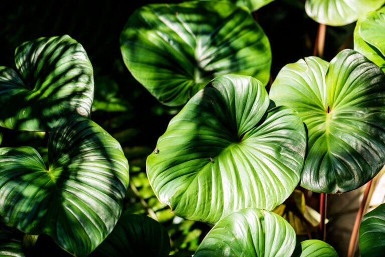 A diferencia de la monstera, sus hojas suelen ser más redondeadas y sin cortes, lo que les da un aspecto más suave. Son plantas que pueden estar en el suelo, en macetas de tamaño generoso, y que crecen con una forma bastante equilibrada que no necesita mucha intervención.