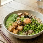 Esta es una opción muy saciante, ya que incluye a una proteína, como lo es el salmón, junto con la fibra en los noodles de trigo sarraceno ya cocidos. Vas a picar el salmón ahumado en tiras y mezclarlo con los noodles, además de agregar unas láminas de pepino y semillas de sésamo. Es un plato con una textura sedosa, digno de restaurante.