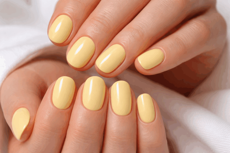 El amarillo mantequilla es un tono suave que transmite optimismo sin resultar estridente. Perfecto para quienes buscan un color que ilumine las manos, se adapta muy bien a pieles claras y medias. Luce mejor en uñas cortas y redondeadas, ya que aporta un aire juvenil y desenfadado. Además, combina con accesorios dorados o plateados, reforzando esa sensación de frescura.