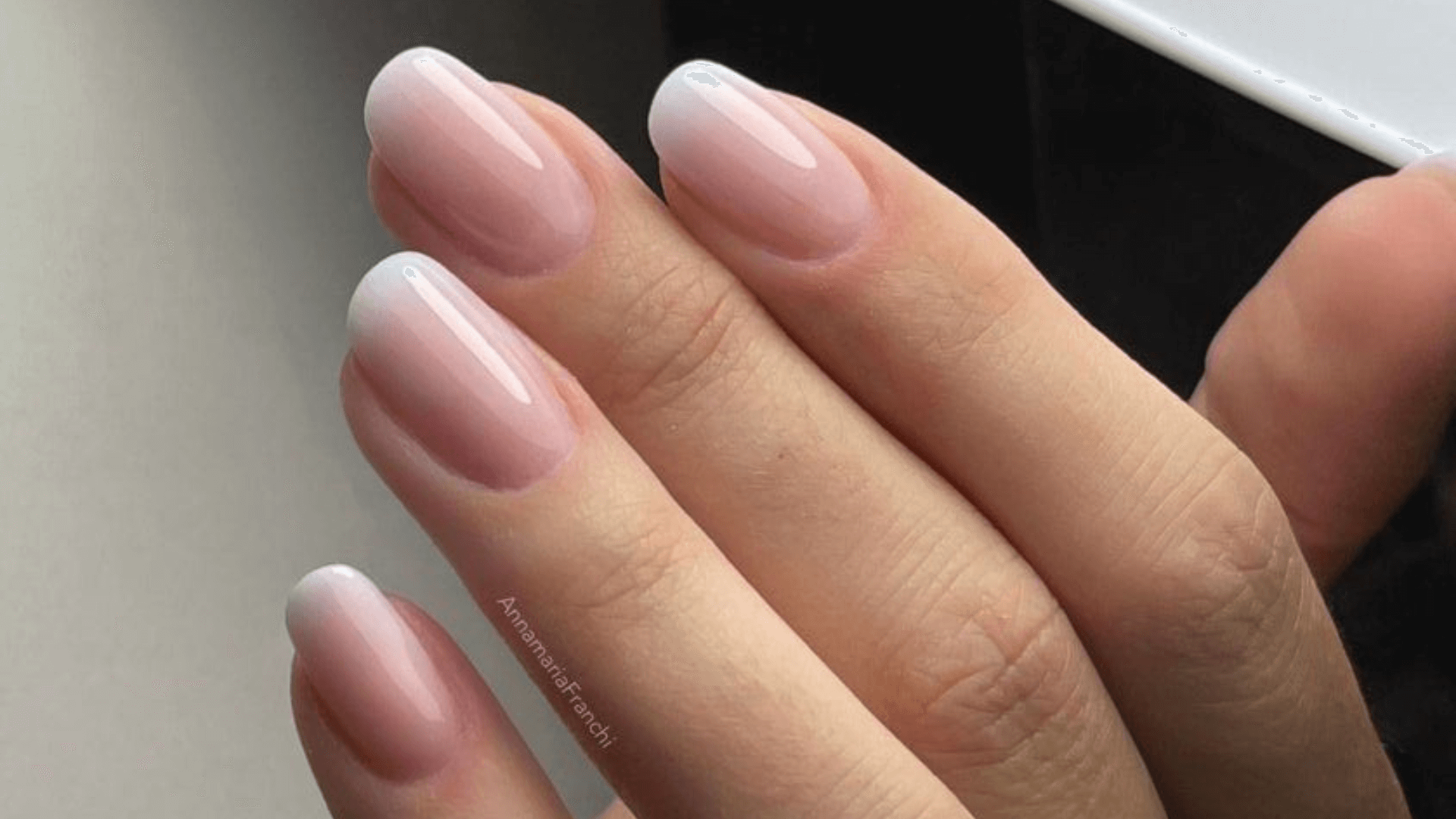 En este estilo, la transición entre la base nude y la punta blanca se difumina para crear un degradado que da la ilusión de uñas más largas. Su diseño elegante y clásico la hace perfecta para cualquier edad y realza tus manos con un aspecto limpio y rejuvenecido.