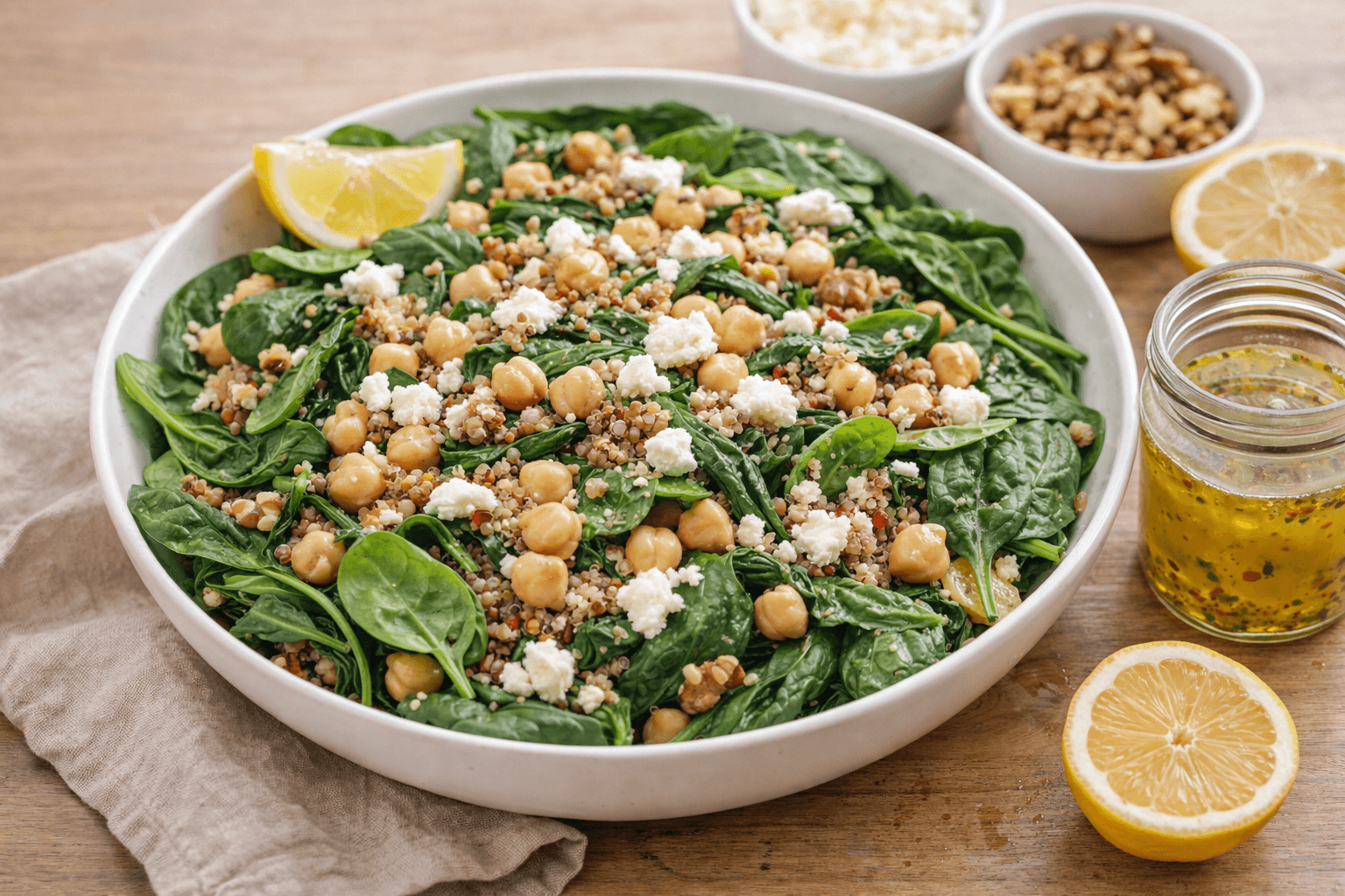 Las espinacas funcionan muy bien en crudo, pero la clave está en acompañarlas mejor. Puedes sumarlas a una base con garbanzos, lentejas o incluso quinoa. Añadir un queso suave, como feta o de cabra, y algo crujiente como semillas o frutos secos cambia por completo la experiencia. Un aliño sencillo con aceite de oliva, limón y sal termina de equilibrar el plato.