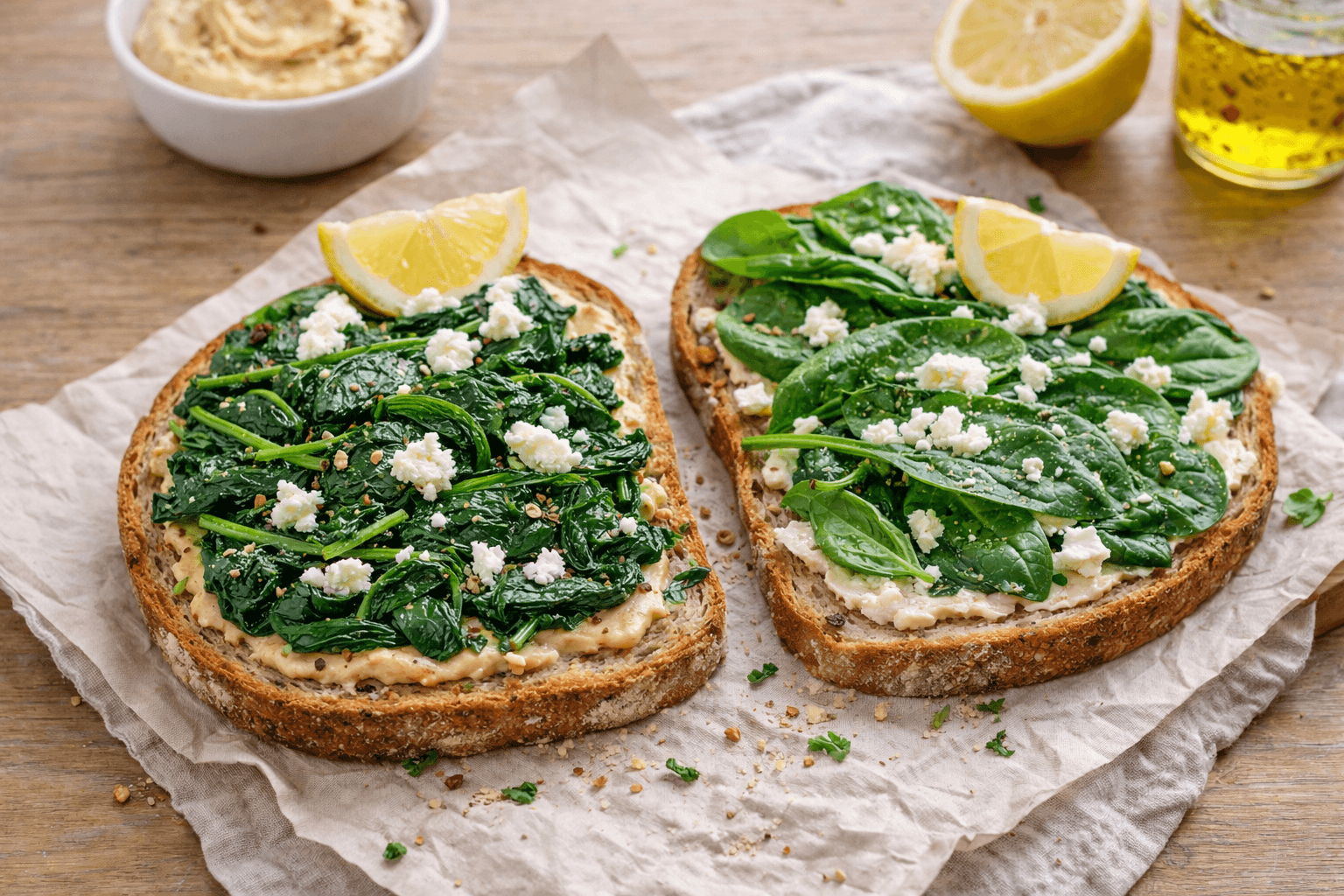 Otra forma rápida de usarlas es en tostadas. Puedes saltear ligeramente las espinacas o usarlas frescas, y combinarlas con ricotta, hummus o queso de cabra.