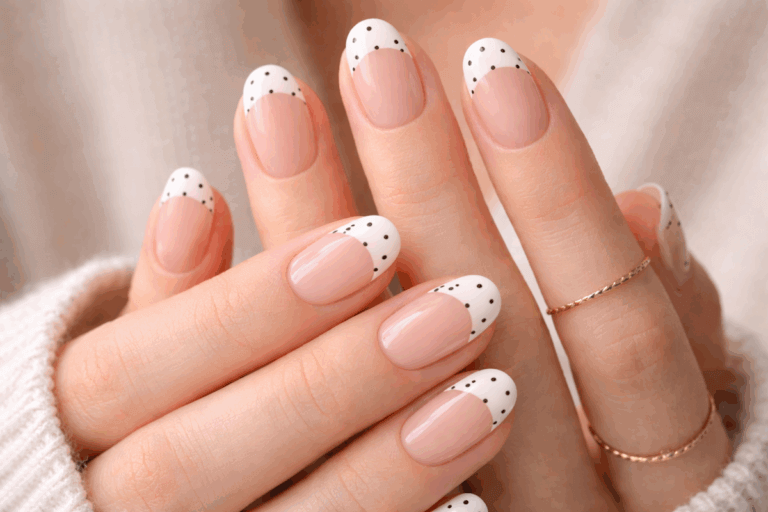Para quienes buscan un toque sofisticado y moderno, el estilo polka-French combina la clásica manicura francesa con pequeños lunares en la punta. Otra alternativa es el negative space, donde los puntos se aplican sobre áreas sin esmalte, creando un efecto gráfico y contemporáneo.