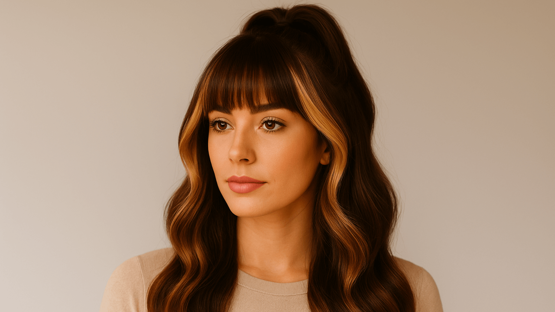 Si buscas una opción más cálida y natural, esta combinación es ideal. Las mechas caramelo suavizan el contraste e iluminan tu melena sin alejarse demasiado de tu tono de base. Queda genial en cabellos ondulados o texturizados.